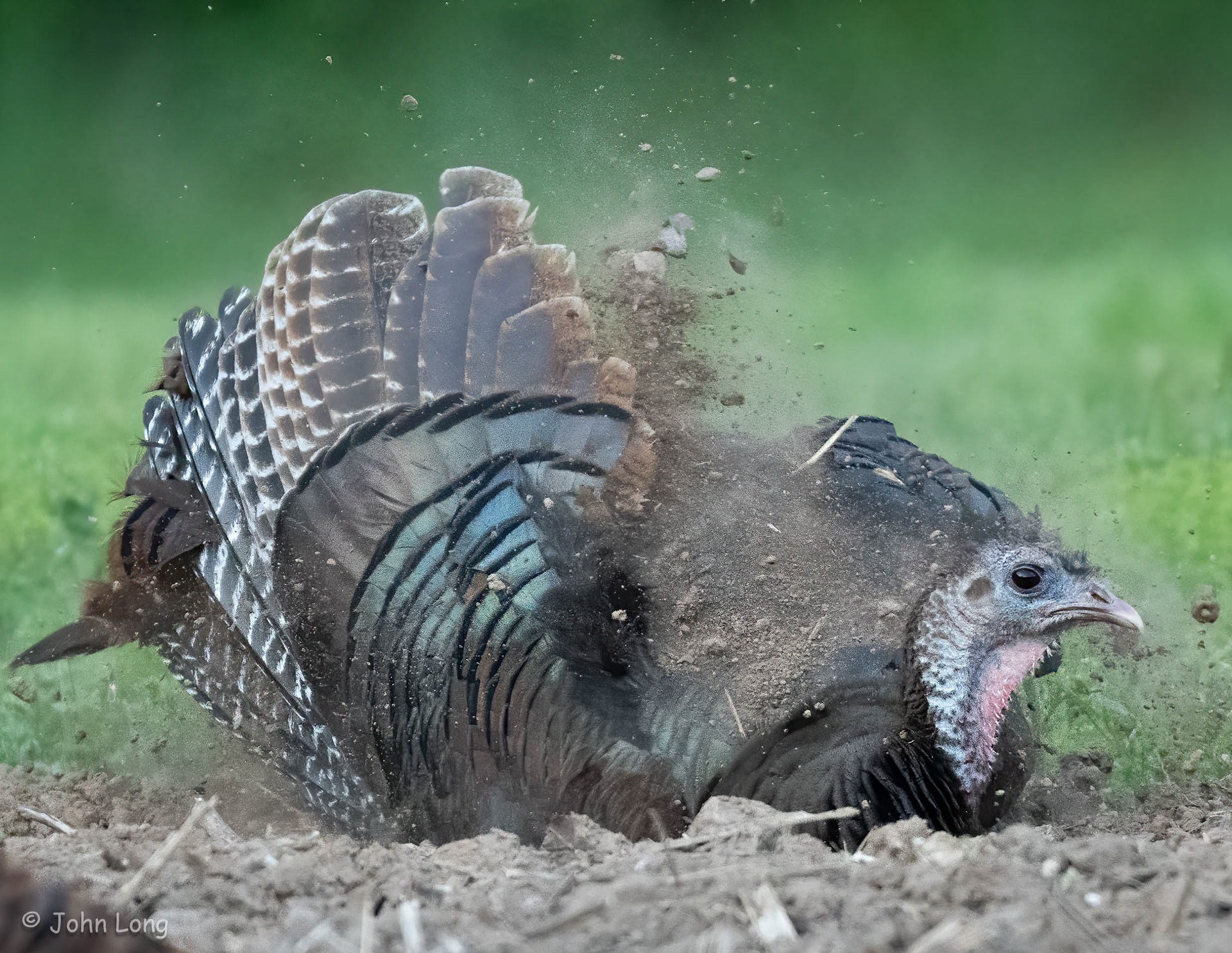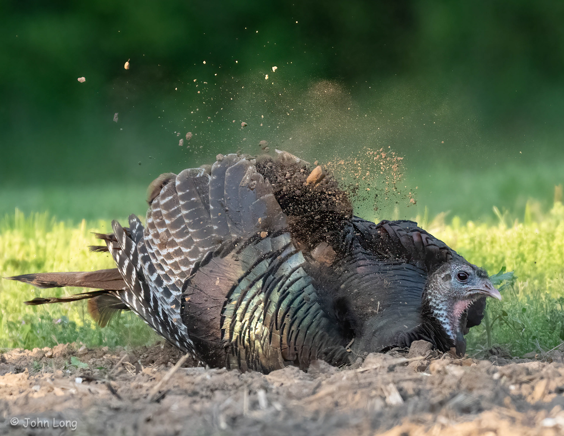 Taking a dust bath. They can kick up a lot of dirt.